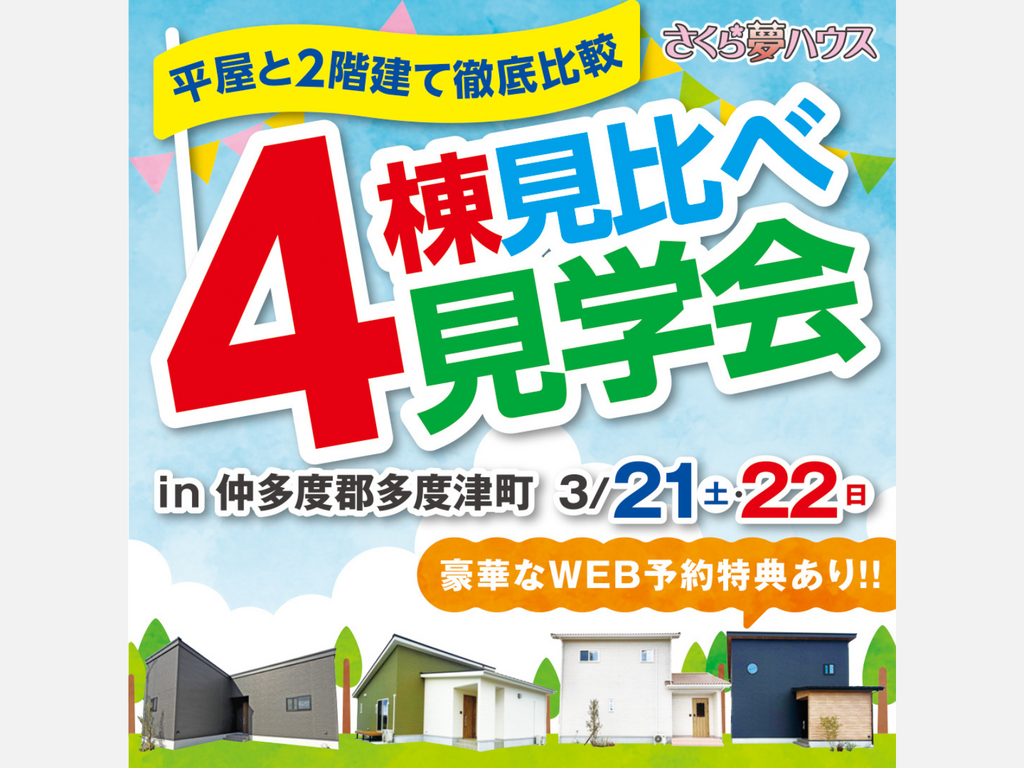 | タイトル | 《最終》平屋と2階建て 4棟見比べ見学会 |